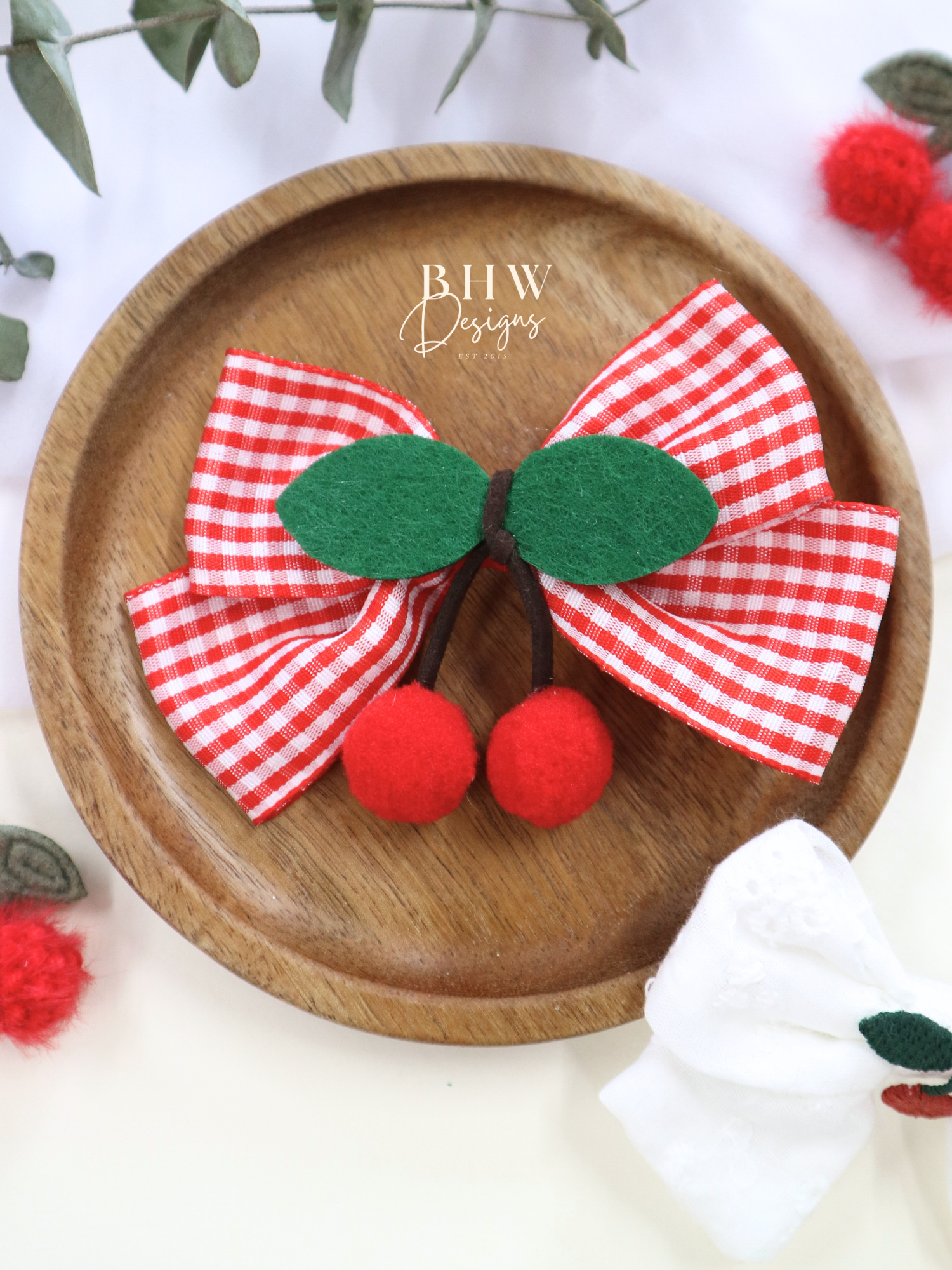 Cherry Gingham Hair Bow