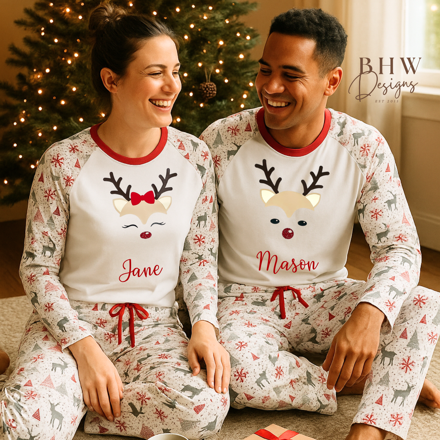 Get ready for cosy festive mornings with our Men’s Personalised Reindeer Christmas Pyjamas. Featuring a charming reindeer face and your chosen name or title printed beneath, perfect for “Daddy”, “Grandad”, or any special name.
