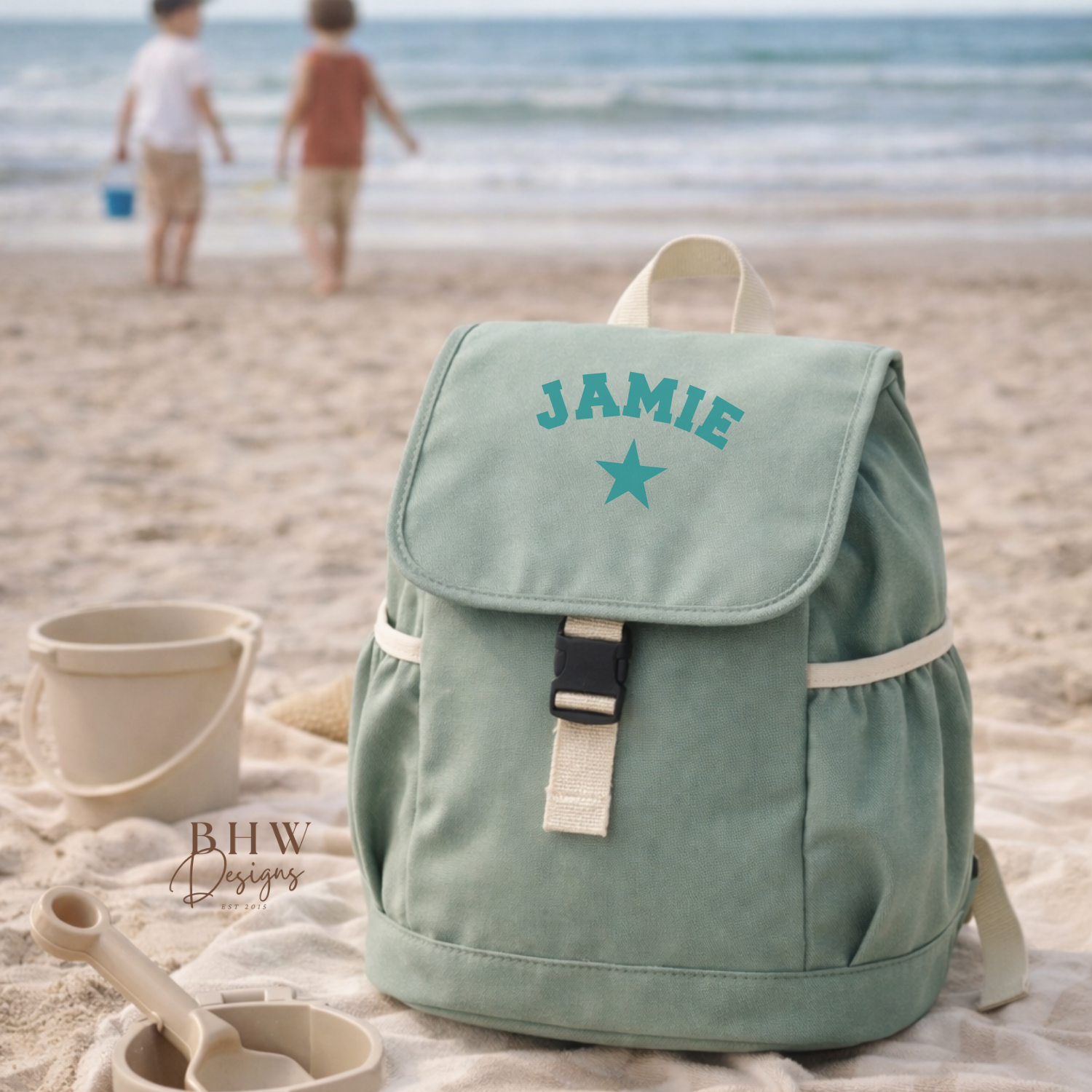 Featuring contrast cream trim, elasticated side pockets and a timeless star detail, each backpack is personalised with your child’s name for a special finishing touch. The fold over flap with adjustable buckle and internal drawstring closure keeps belongings secure, while padded, adjustable shoulder straps and a grab handle make it easy for little ones to carry.